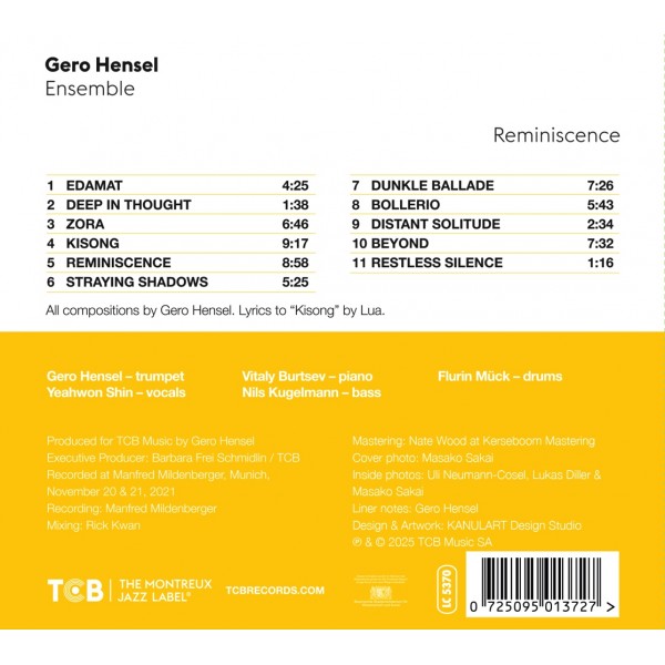 À la fois mystérieux et énergique, le trompettiste Gero Hensel ouvre Reminiscence — un album fait de moments, de souvenirs et d'expériences capturés en musique. Les compositions, toutes signées par Hensel, s'imprègnent d'influences venues d'ailleurs que le jazz, convoquant des univers classiques tels que Moussorgski (Straying Shadows) ou Bartók (Beyond). Formes, structures harmoniques et motifs empruntés au répertoire classique sont revisités, transformés et combinés aux esthétiques du jazz pour donner naissance à des œuvres complexes, riches et plurielles, qui s'affranchissent des codes établis.