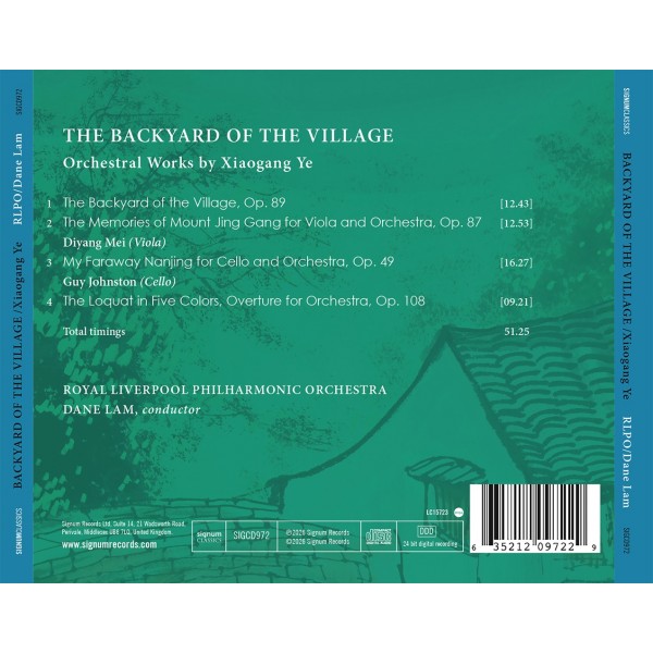 Cette sortie Signum Classics réunit quatre œuvres orchestrales de Ye Xiaogang, figure majeure de la musique contemporaine chinoise, interprétées par le Royal Liverpool Philharmonic Orchestra sous la direction de Dane Lam. L'album mêle histoire et mémoire personnelle, de The Backyard of the Village (2019), portrait vibrant de la vie rurale chinoise, à My Faraway Nanjing (2005), concerto émouvant en hommage aux victimes du massacre de Nankin. The Memories of Mount Jing Gang (2019) et The Loquat in Five Colors (2024) complètent le programme, explorant paysages et légendes à travers une orchestration moderne et expressive. Une immersion intense dans l'univers unique de Ye Xiaogang, où tradition chinoise et technique orchestrale contemporaine se rencontrent.