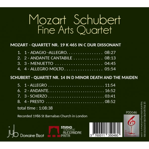 Wolfgang Amadeus Mozart (1756-1791) : Quatuor n°19 en do Maj “Les Dissonances” pour cordes - Franz Schubert (1797-1828) : Quatuor à cordes n°14 “La Jeune Fille et la Mort” / Enregistrement de 1986 à l'Église Saint-Barnabé à Londres