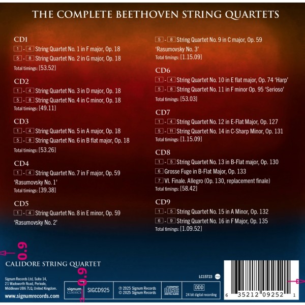Pour clôturer l'année 2025, le célèbre Quatuor Calidore présente son intégrale des œuvres de Beethoven pour quatuor à cordes, réunissant ses 16 quatuors. L'album The Late Quartet leur a valu le BBC Music Magazine Chamber Award en 2023, The Middle Quartets a été élu Recording of the Month (octobre) par Gramophone en 2024, et les derniers Early Quartets ont reçu des critiques quatre étoiles.