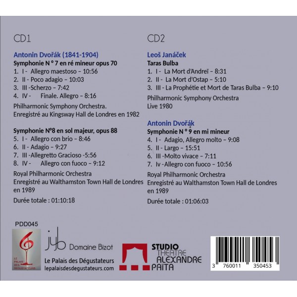 Antonin Dvok (1841-1904) : Symphonie n°7 en ré min Op.70, Symphonie n°8 en sol Maj Op.88, Symphonie n°9 en mi min - Leoš Janáček (1854-1928) : Taras Bulba / Enregistrements de 1980, 1982 et 1986