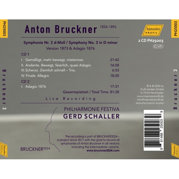 Malgré de nombreux revers, la musique de Bruckner s'est imposée. Sa quête de la forme et de la perfection exprimait une conviction artistique profonde et une vocation intérieure. À l'instar de Beethoven, il aspirait à une « musique absolue », un univers sonore qui dépasse la simple expressivité et parle par lui-même. Sa Troisième Symphonie, notamment, où « la trompette introduit le thème », en est un témoignage saisissant : une œuvre puissante, intemporelle et profondément authentique. Gerd Schaller