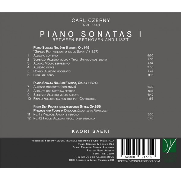 Ce nouvel album invite à redécouvrir un compositeur souvent réduit à ses exercices, mais dont la musique révèle une vraie profondeur romantique et une finesse viennoise. La puissante Grande Sonate en si mineur et la saisissante Sonate Appassionata en fa mineur dévoilent une écriture audacieuse et expressive. En complément, une sélection de Préludes et Fugues dans tous les tons, hommage à Bach, met en lumière son art du contrepoint. Une redécouverte vibrante, à ne pas manquer.