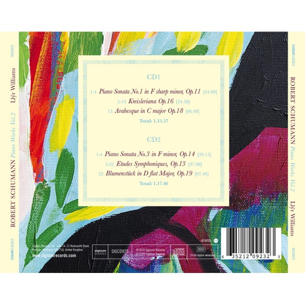 Le pianiste gallois Llŷr Williams apporte une profonde intelligence musicale à son travail de soliste, d'accompagnateur et de chambriste. Son deuxième album consacré à Robert Schumann explore une sélection d'œuvres couvrant une part substantielle de la vie du compositeur.