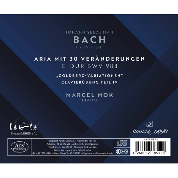 Depuis ses années d'études, le pianiste germano-taïwanais Marcel Mok n'a guère abordé une œuvre avec autant de fréquence et d'intensité que les Variations Goldberg BWV 988 de Bach. Il était donc tout naturel qu'il choisisse non seulement de clore son parcours académique avec ce cycle de variations, mais aussi d'en faire le sujet de son premier enregistrement.