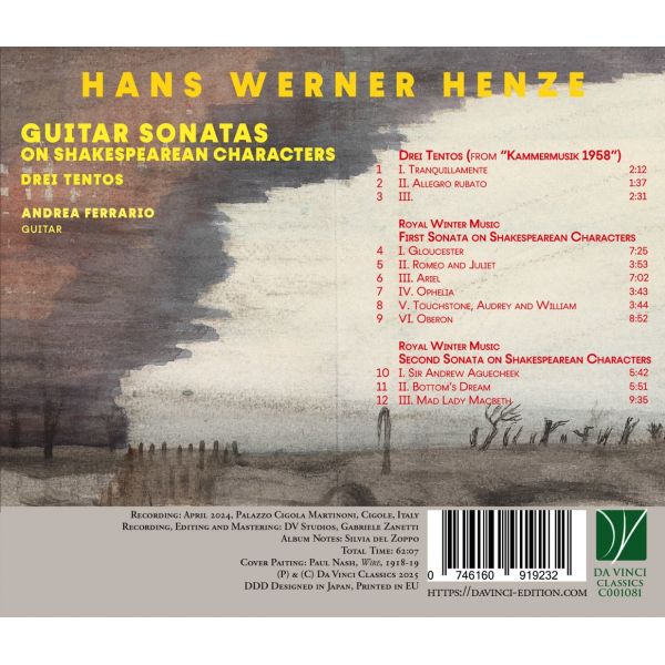 Hans Werner Henze (1926-2012) : Drei Tentos extrait de “Kammermusik 1958”, Royal Winter Music - Sonates pour guitare d'après des personnages de Shakespeare (Gloucester, Romeo et Juliet, Ariel, Ophelia, Touchstone, Audrey And William, Oberon, Sir Andrew Aguecheek, Bottom'S Dream, Mad Lady Macbeth)