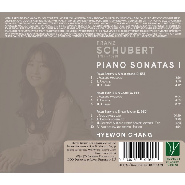 L'album “Sonate pour piano - Volume 1” inaugure un voyage schubertien conçu comme un triptyque, reliant la fraîcheur exploratoire de 1817, la lumière de l'été de Steyr et la profondeur introspective de 1828. Des sonates D. 557 et D. 664, encore marquées par l'héritage classique et le chant intime, à la monumentale D. 960, ultime chef-d'œuvre pour piano, Schubert déploie un univers où le temps se dilate et où mémoire, silence et poésie se rejoignent.